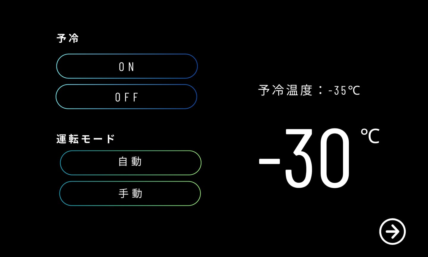 どんなに高品質な冷凍ができる急速冷凍機でも、使いこなせなければ意味がありません。そこで、パラダイムシフトフリーザーでは、誰でも簡単に使えるよう、シンプル設計にこだわりました。外観のデザインや操作パネルなど、直観的に操作が可能です。また、生産性や電気代、環境への配慮など、経営の観点からもうれしい機能を備えています。